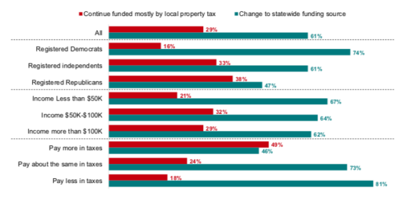Respondents across party lines preferred changing to a statewide funding source over the current system. Even those who believed they would pay more in taxes were divided.